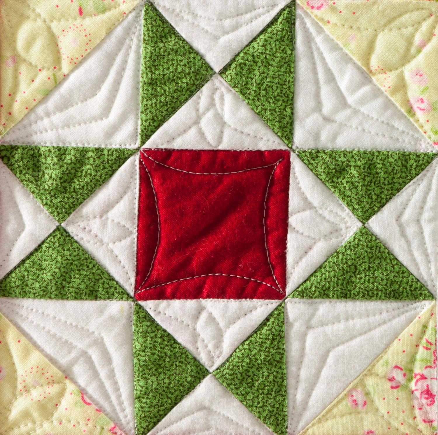 This month you will be making four cornerstone star blocks and then adding all of the borders to your Halo Medallion quilt.